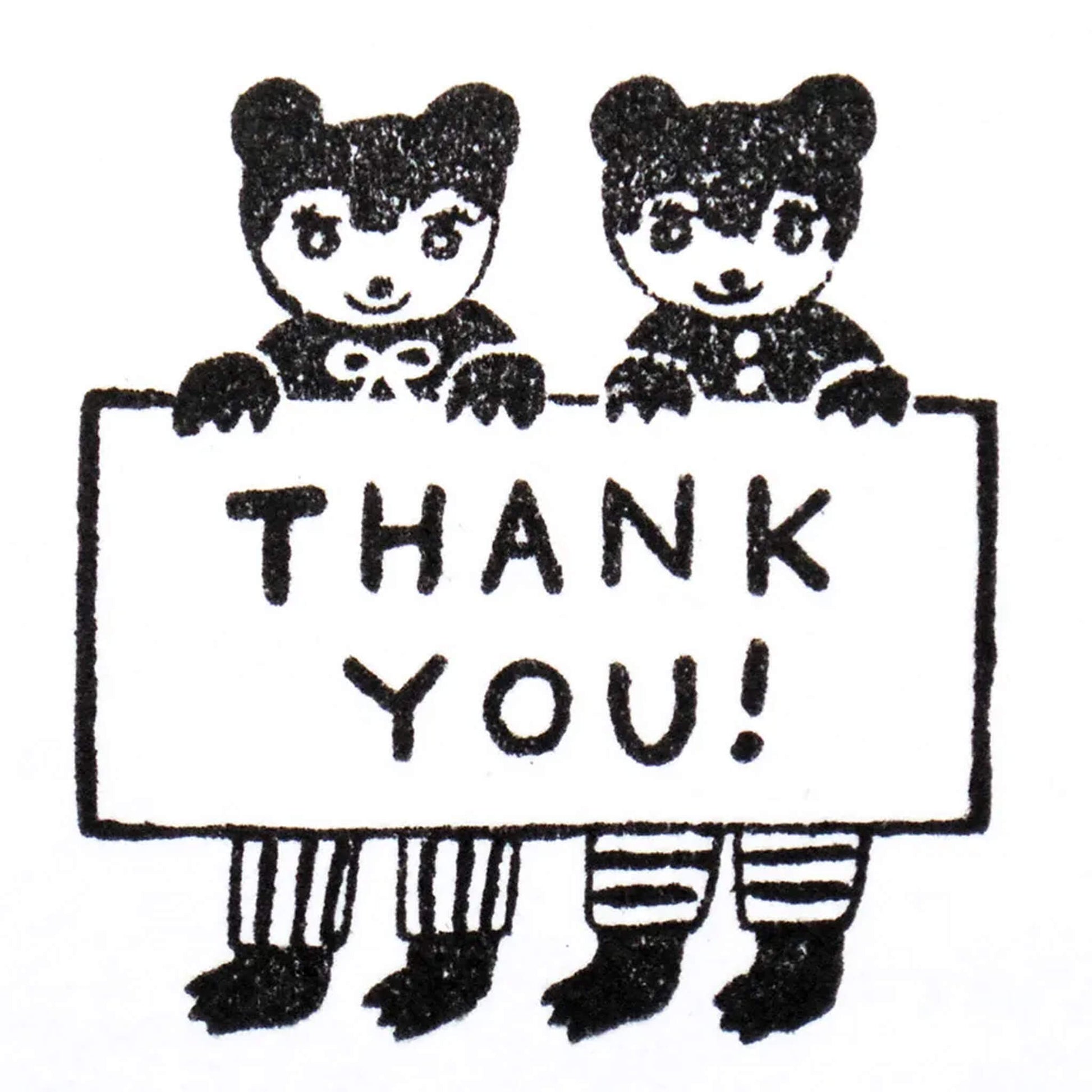 This Cozyca rubber stamp by Aiko Fukawa features two little bears holding a “THANK YOU!” sign in a storybook style. It’s well-suited for cards, letters, and gift wrapping when you’d like to express your gratitude, adding a warm, personal touch to your message.