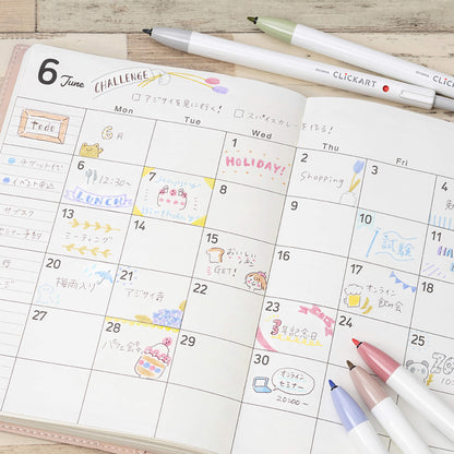 Zebra Clickart har en praktisk klickmekanism, vilket eliminerar besväret med att tappa bort pennlock - något som sällan ses i kategorin filtspetspennor, där bläck vanligtvis avdunstar och torkar ut vid exponering. CLICKART övervinner denna utmaning med sin unika Moist Keep Ink-formula, som absorberar fukt från luften för att hålla bläcket ordentligt hydrerat.
